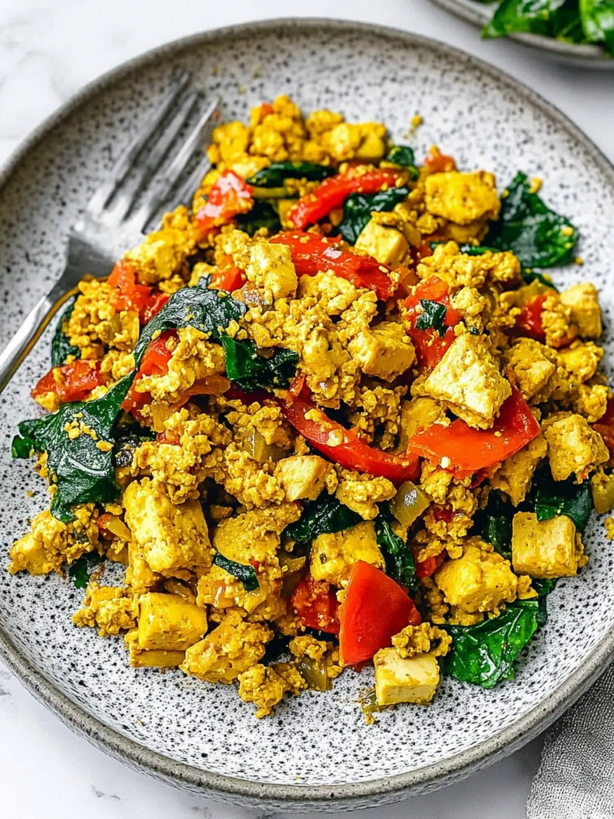 After cooking, let the scramble sit covered for 5 minutes. This rest period allows the tofu to absorb the seasoning fully, resulting in a more cohesive flavor profile. It also helps the vegetables soften just enough to be tender without losing their bite.