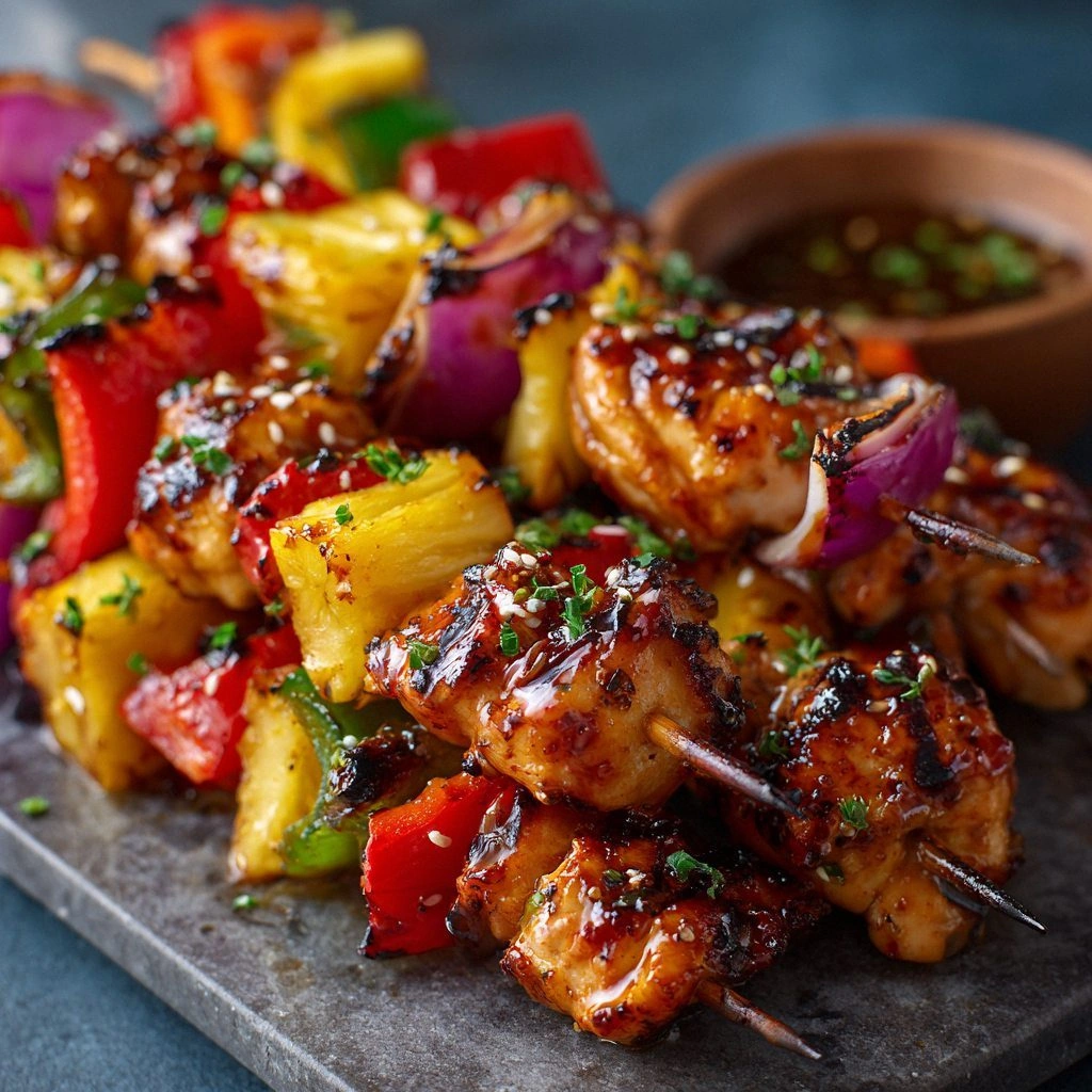 Chicken thighs are the star here. Their higher fat content keeps the meat juicy and tender, especially when grilled. For a leaner option, you could use chicken breast, but be prepared to watch it more closely to avoid drying out. The pineapple is diced into bite‑sized chunks, ensuring that each skewer has a sweet burst of flavor that caramelizes beautifully when grilled.