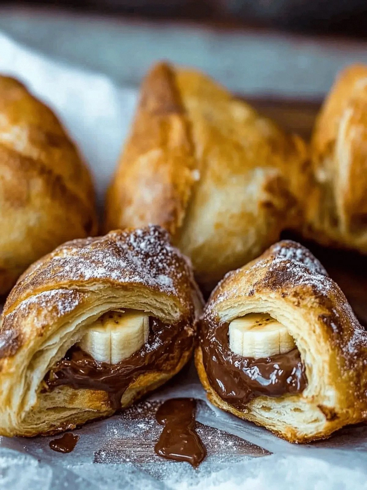 Picture this: a golden crescent roll, its flaky layers crisped to perfection, slathered with a silky spread of Nutella that glistens under the kitchen light. Inside, a banana, sliced thinly, releases a sweet, almost buttery aroma that mingles with the faint hint of cinnamon. The moment you bite, the dough cracks open like a fragile shell, releasing a burst of chocolate and banana that coats your tongue like velvet. The texture is a delightful contrast—soft, buttery exterior with a chewy, sweet interior that keeps you coming back for more.