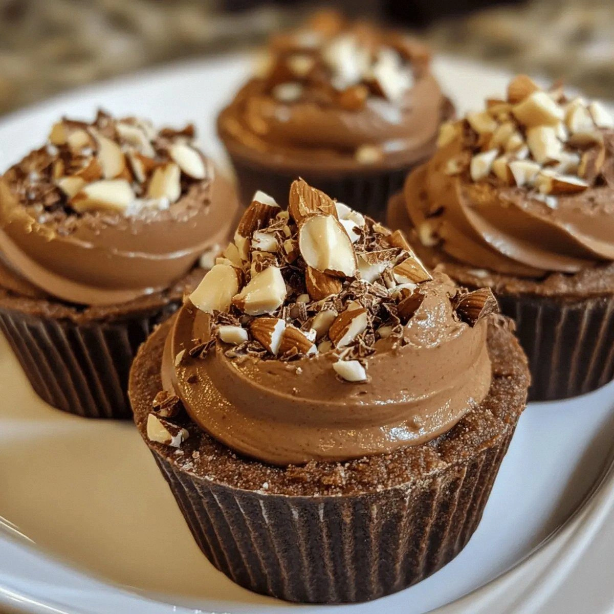 50 grams of toasted hazelnuts and 30 grams of chocolate shavings or curls are used as toppings, adding crunch and a glossy finish. The toasted nuts provide a nutty crunch that contrasts with the smooth mousse, while the shavings give a decorative touch that elevates the presentation. If you’re looking for a lower‑fat option, simply reduce the amount of hazelnuts or omit them altogether.