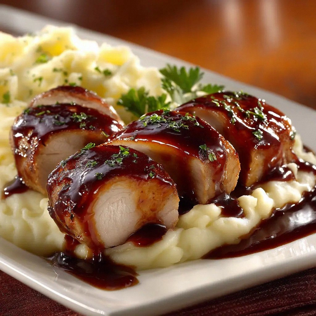- Slice the pork into ½‑inch thick medallions, then arrange them on a platter. Drizzle the reduced sauce over the slices and garnish with fresh chopped parsley or a sprinkle of sesame seeds for color and texture. The final dish should look glossy, the meat should be tender, and the aroma should be irresistible. Plate it up and serve immediately.