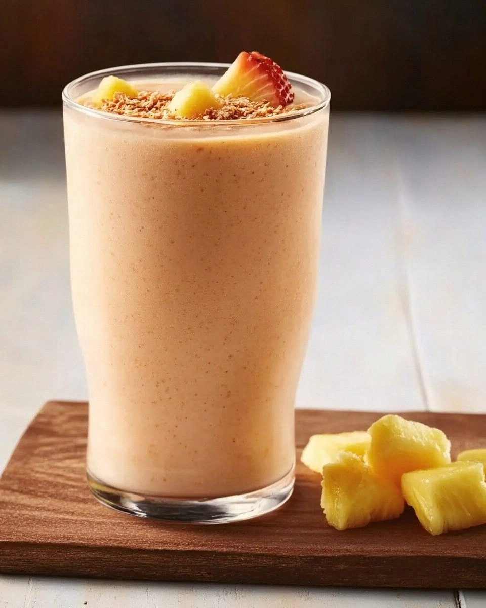 Replace the pineapple with blueberries and add a scoop of whey protein. The berries add antioxidants, while the protein keeps you full longer. Ideal for a quick breakfast on the go.
